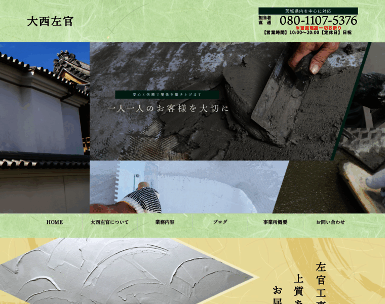 左官工事なら茨城県土浦市の大西左官までお任せください。お客様を第一に考え、高品質で細部にまでこだわった丁寧な施工を行っております。安心のアフターフォローまでしっかりと対応。まずは、お気軽にご相談ください。