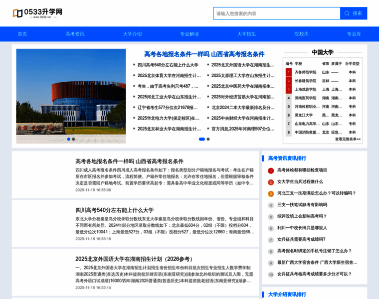 0533升学网致力于打造专业高考升学信息平台。涵盖高考资讯、大学介绍、专业解读、大学招生、志愿填报、院校分数线等高考相关内容,为大家提供高考升学服务,尽在0533升学网!