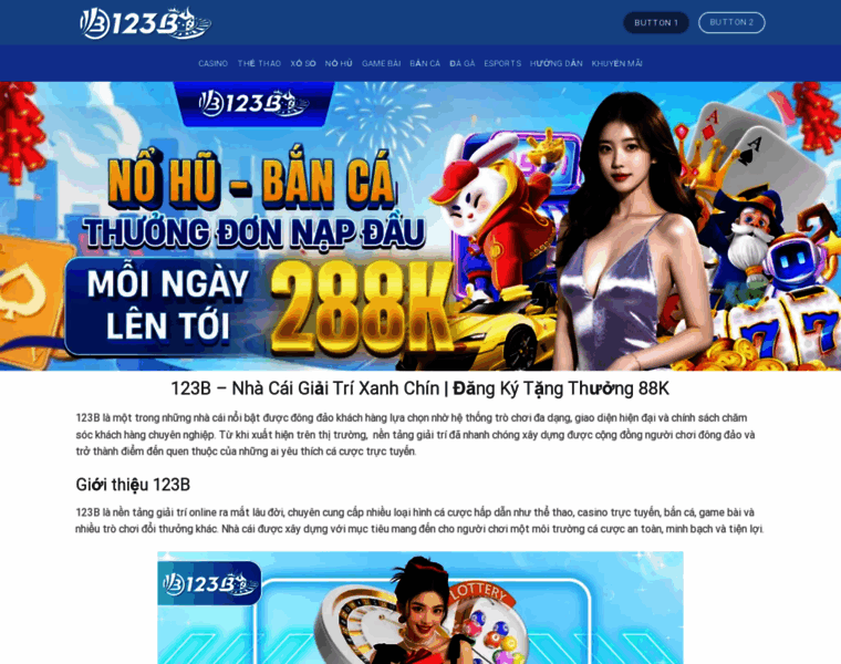 123b là nhà cái giải trí trực tuyến châu Á với các trò chơi như casino online, thể thao, nổ hũ, bắn cá, xổ số,... tỷ lệ thưởng cao, khuyến mãi nhiều.