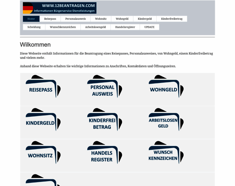 Diese Website enthält Informationen über die Beantragung von eine Reisepass, Personalausweis, Lizens und mehr - www.12beantragen.com