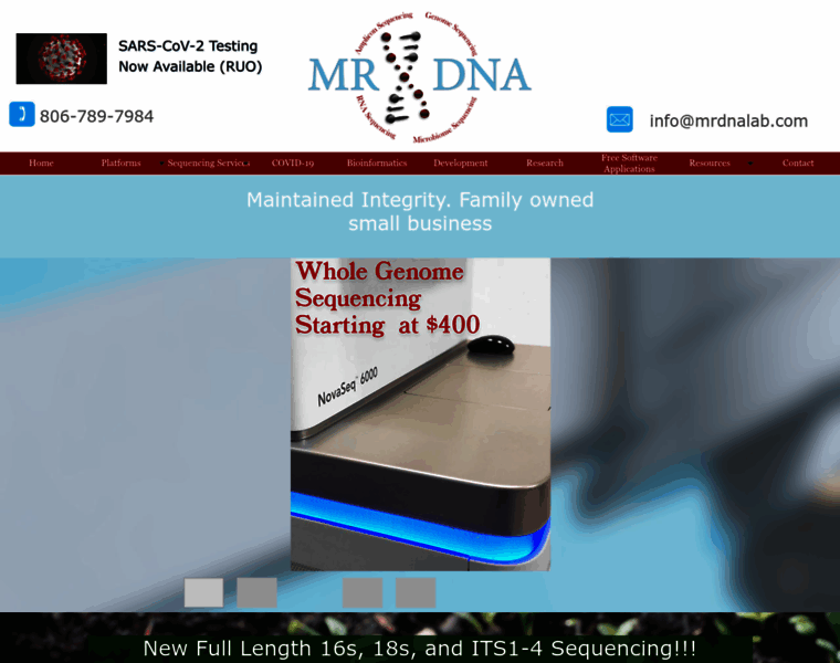 Molecular Research LP (MR DNA) is your next generation sequencing and bioinformatics service provider and collaborator. We specialize in Illumina sequencing , 454 pyrosequencing, Ion Torrent PGM sequencing, and Ion Torrent Proton sequencing. We have additional support for genotyping, biostatistics, bioinformatics, 16s rRNA sequencing, metagenomes, microbiota, transcriptomes, and more. We strive to work with our friends, colleagues and collaborato...