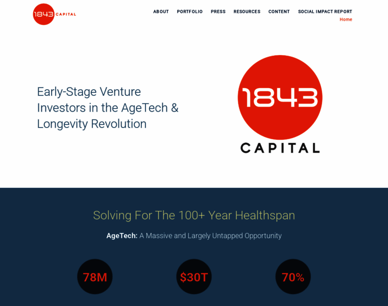 1843 Capital, venture capital firm founded by Tracy Chadwell focused on early-stage AgeTech and Longevity, FinTech, and Cybersecurity