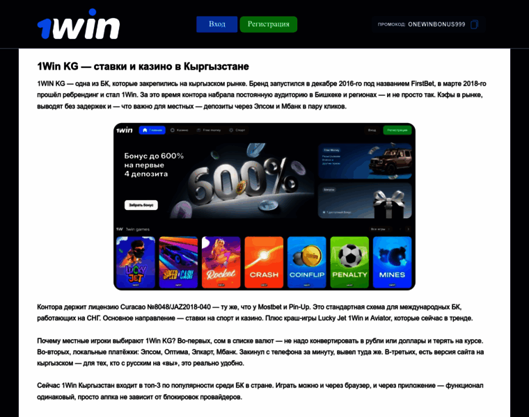 1Win KG — Букмекерская контора и казино в Кыргызстане