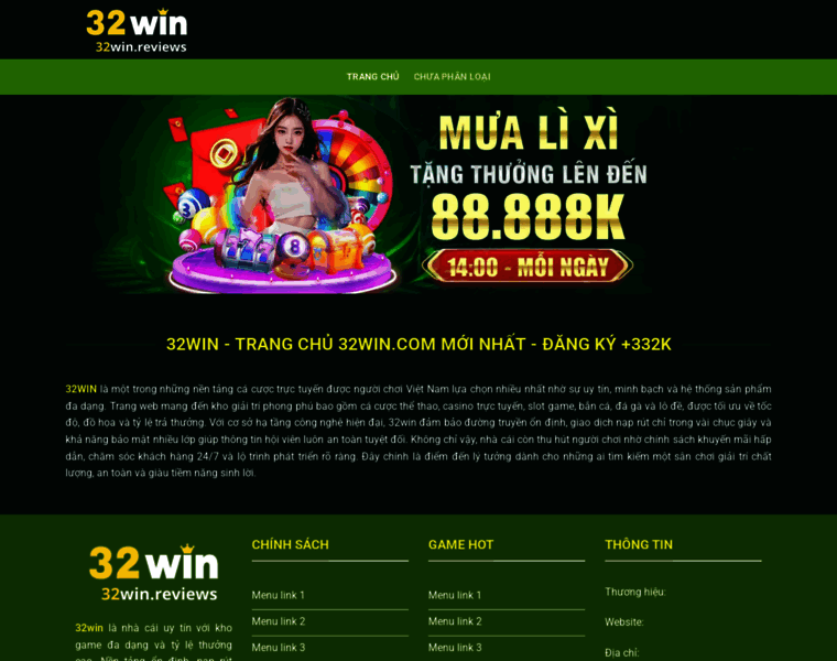 32WIN là một trong những nền tảng cá cược trực tuyến được người chơi Việt Nam lựa chọn nhiều nhất nhờ sự uy tín, minh bạch và hệ thống sản phẩm đa dạng. Trang