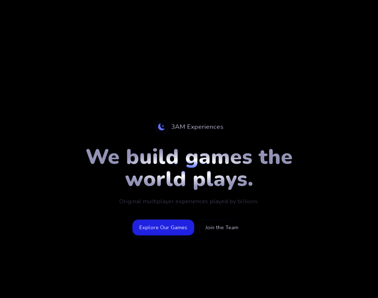 3AM Experiences is a game studio whose games have been played over a billion times. We build original multiplayer experiences across web, mobile, and Roblox.