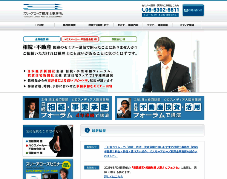 スリーアローズ税理士事務所(大阪市淀川区)。不動産投資・相続に関するセミナー講師・講演は実務経験豊富な税理士にお任せください。日本経済新聞社主催「相続・事業承継フォーラム」等の講師経験あり。