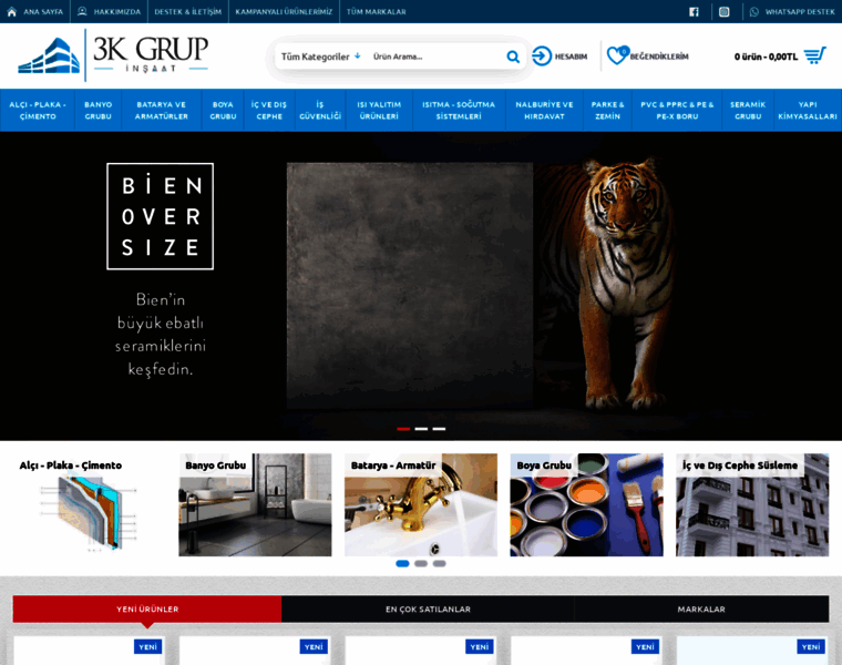 3K Grup , ALÇI - PLAKA - ÇİMENTO, BANYO, BATARYA VE ARMATÜRLER, BOYA GRUBU, İÇ VE DIŞ CEPHE, İŞ GÜVENLİĞİ EKİPMANLARI, ISI YALITIM ÜRÜNLERİ, ISITMA - SOĞUTMA SİSTEMLERİ, NALBURİYE VE HIRDAVAT, PARKE & ZEMİN, PVC & PPRC & PE & PE-X BORU, SERAMİK GRUBU, YAPI KİMYASALLARI