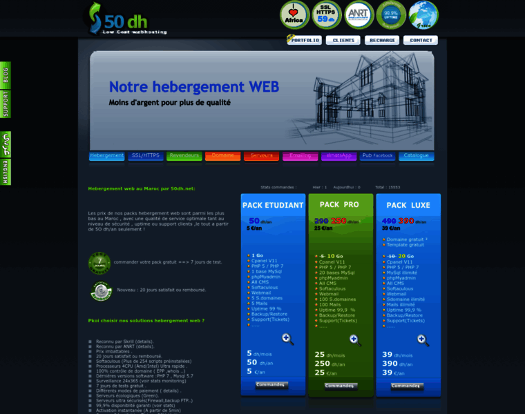Hebergeur au maroc qui propose l'Hebergement web le moins cher au Maroc , hébergeur sites web gratuit et serveur dediee , niveau de sécurité trés elevé , support technique reactif et compétent , des solutions pour revendeur hebergement et mailing ,des solutions mailing maroc sur mesure et de centaines de modéles de creation de site web statique et dynamique