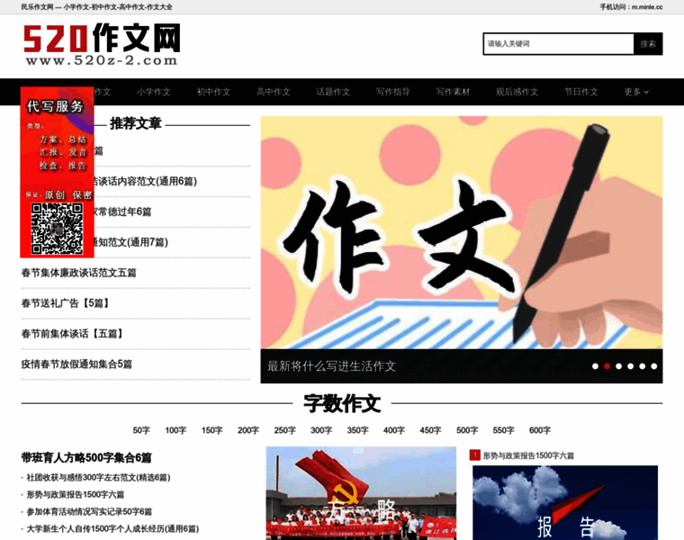 作文网提供中考作文、高考作文、语文学习、写作素材、优秀作文、中考满分作文、高考满分作文、免费语文阅读资料下载、考场作文指导、英语作文等各项服务。