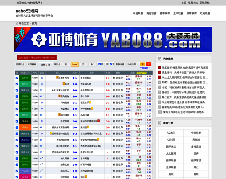 亚博资讯网(yabo88.com)是一个专业的体育足球资讯网站,提供及时、全面、准确的国际足球热点,呈现意甲、英超、西甲,欧冠等五大联赛的必发指数,必发交易量,凯利指数,热门指数,积分、赛程,提供欧冠最新赛况、视频、新闻,分享天下足球以及历史资料与数据等,内容更新准确,比分最快的足球网站平台。