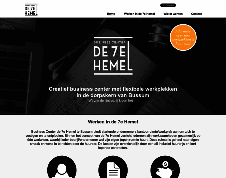 Een flexplek huren? De 7e Hemel, Business Center, Creatief verzamelkantoor met flexibele werkplekken te huur voor startende ondernemers, Bussum, het Gooi