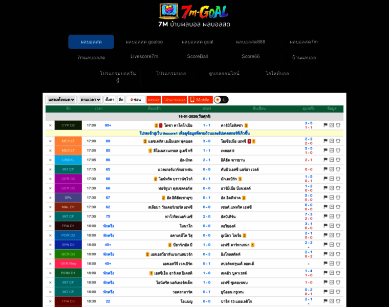 เช็กผลบอลสด บ้านผลบอล 7m ผลบอลสด7m วันนี้แบบเรียลไทม์ ครบทุกลีก ทุกแมตช์ พร้อมลิงก์ดูบอลออนไลน์ livescore ทั่วโลก มีเว็บเดียวครบ จบทุกเรื่องผลฟุตบอล