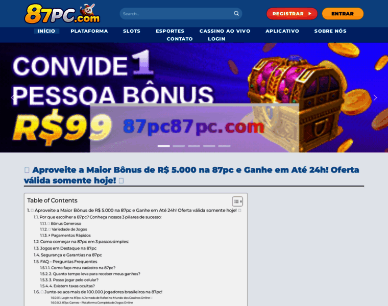 87pc: Bônus de R$ 5.000 + Saque em 24h | 2025