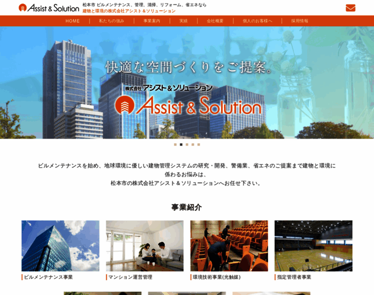松本市 ビルメンテナンス、管理、清掃、リフォーム、省エネなら、建物と環境の株式会社アシスト&ソリューションへ。創業以来40年間、お客様の要望に対し少しでも多くお応えできるよう、トータル的な対応のできる企業を目指しております。お気軽にご相談下さい。