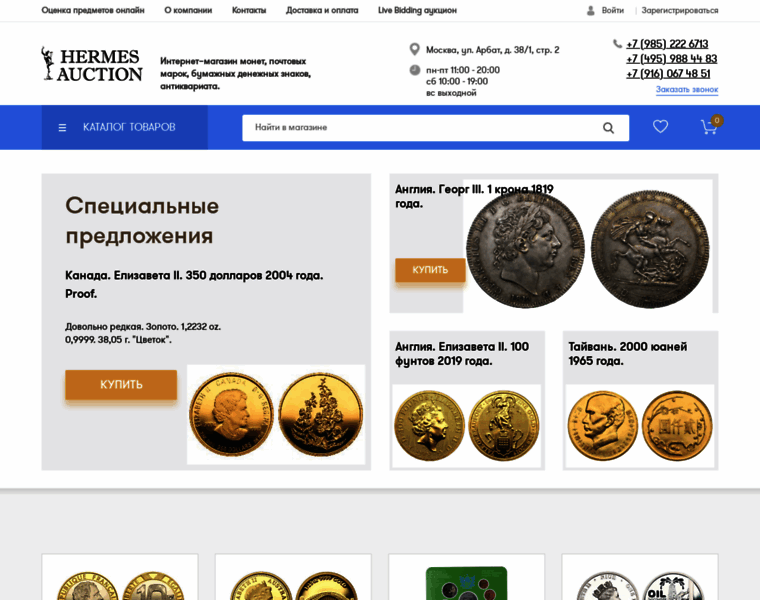 Нумизматический магазин - Гермес-Аукцион. Купить монеты и банкноты в Москве с доставкой по РФ.