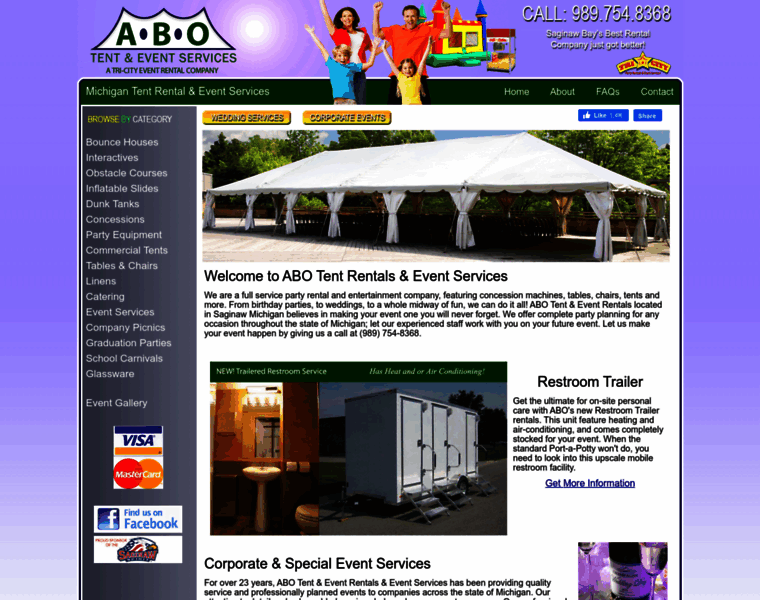 ABO Tent & Event Rentals is Mid-Michigan's premier Party rentals and Event Services company. Providing commercial tent rentals, party equipment, concessions, and other party rentals in the Mid-Michigan, Saginaw, Bay City and Kawkawlin.