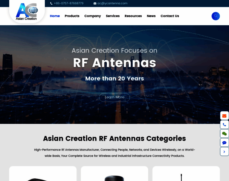 Asian Creation provides a wide selection of standard and custom antennas—from single-band to multiband solutions. OEM & ODM services available with coverage across LTE, GPS, Wi‑Fi, and 5G frequencies. Bulk supply with global shipping.