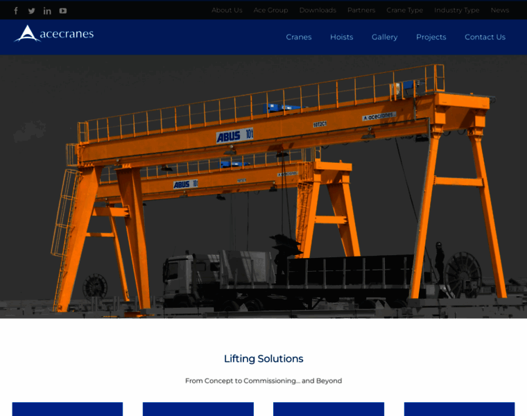 Ace Crane- Lifting Solutions From Concept to Commissioning and Beyond. The Worlds Largest Manufacturing and Supply Company in UAE. Overhead Cranes, Gantry Crane, Jib Cranes, Hoists Cranes, Crane Accessories and Crane Services.