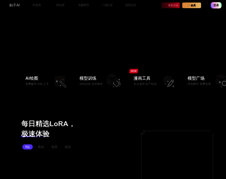 支持文字生成AI图;支持图生图;可controlnet条件生图,上传特征参考图和特征,依照特征进行创作;支持inpainting的神奇涂抹,可局部修改,支持自训练AI绘画模型;支持在基础风格模型上,使用叠加AI绘图模型;支持在模型广场收藏各类画风、IP、场景、人物、设计类模型。