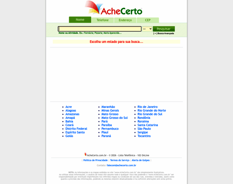 Lista Telefônica - 102 Online | Busca, Pesquisa, Consulta, Telefone, Endereço, Mapa, Rua, CEP, CNPJ, Empresa, CPF, Pessoa, Residencia. GRÁTIS para todo Brasil