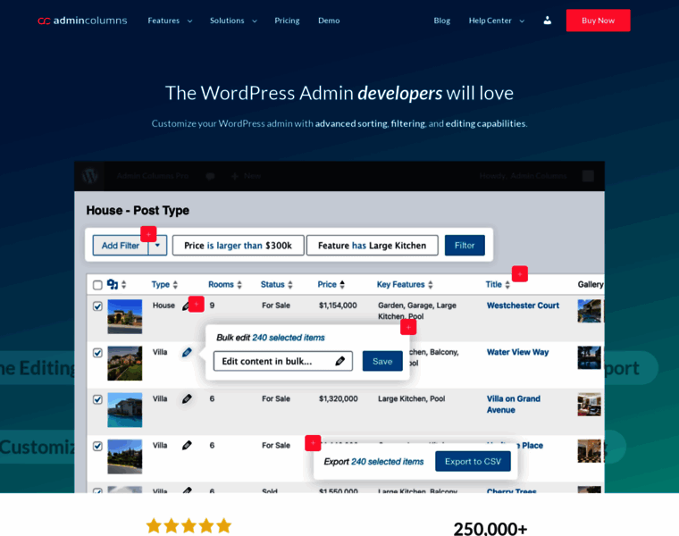 Manage content in WordPress at scale. Add custom columns to the WordPress admin with bulk filtering and editing, sorting, and easy export.
