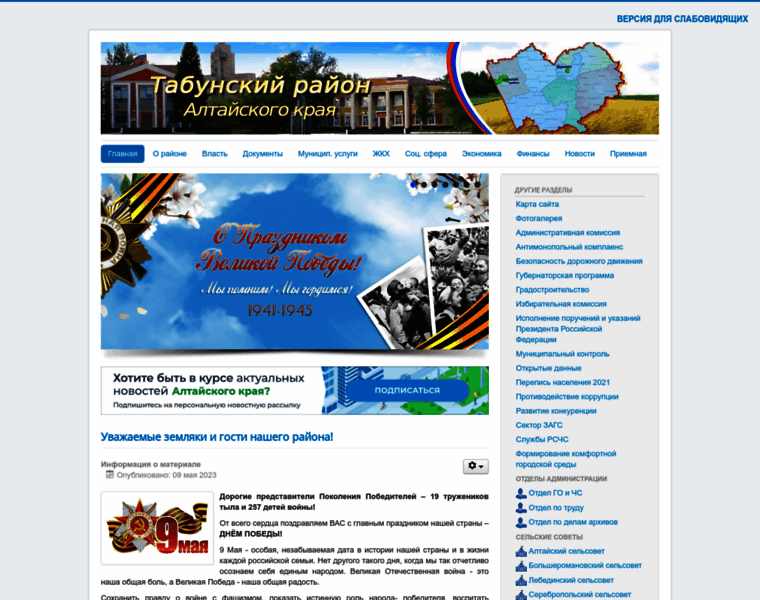 Информация о деятельности муниципального образования Табунский район Алтайского края. Новости, анонсы, объявления от районной, сельской муниципальной власти и подведомственных учреждений Табунского района.
