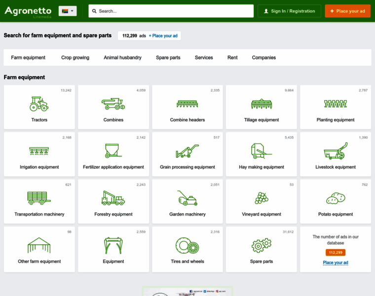 Large selection of farm equipment ➤ A website with offers for purchase and sale of tractors ✓ combines ✓ tillage equipment ✓ and planting equipment at Agroline