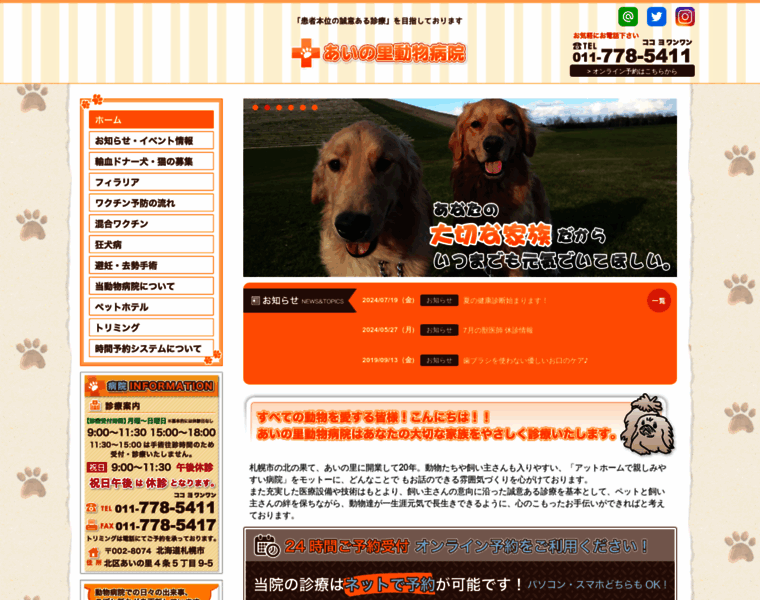 「患者本位の誠意ある診療」を目指す札幌市北区のあいの里動物病院です。ペットホテル・トリミングも行っております。