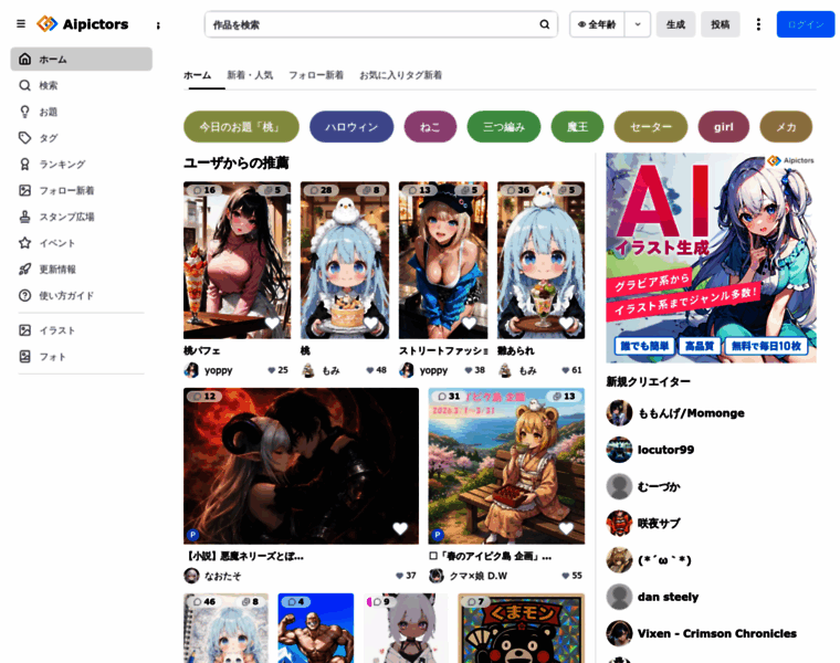 ホーム - Aipictors - AI画像投稿サイト・生成サイト