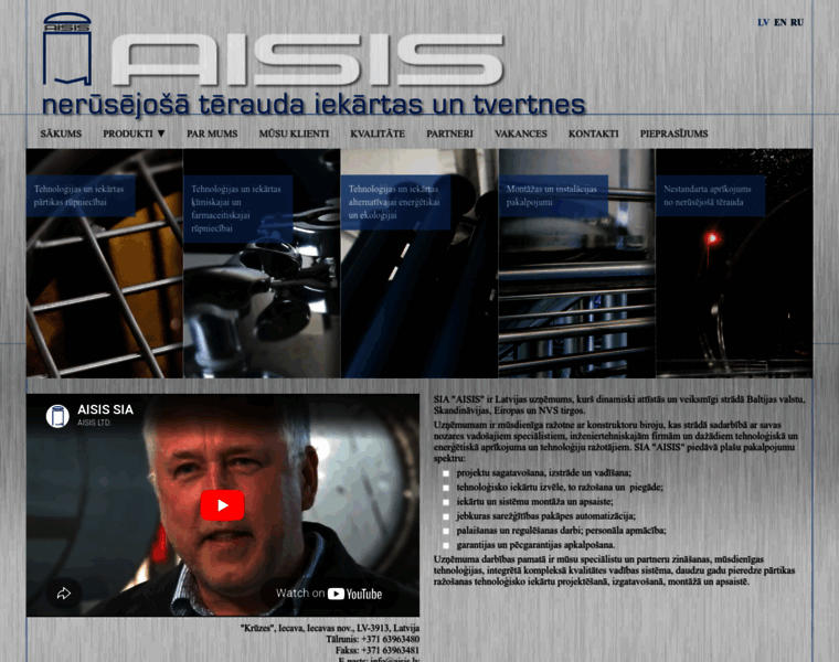 Nerūsējošā tērauda tvertņu, cisternu, konteineru, siltummaiņu un tehnoloģisko iekārtu projektēšana un izgatavošana :: Vessels and equipment from stainless steeel :: Ёмкости и оборудование из нержавеющей стали
