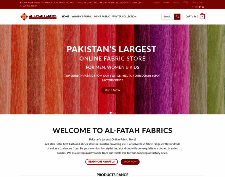 Al Fatah is the best Fashion Fabrics store in Pakistan providing 25+ Exclusive base fabric ranges with hundreds of colours to choose from. Be your own fashion stylist and stand out with our exquisite unstitched branded fabrics.We assure top quality fabric from our textile mill to your doorstep at factory price.