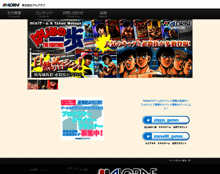 株式会社アルグラフは、「はじめの一歩」などのソーシャルゲームの運営やスマートフォンアプリの開発しています。池袋より10分、音羽のゲーム会社。プログラマー、デザイナー、プランナーを募集中