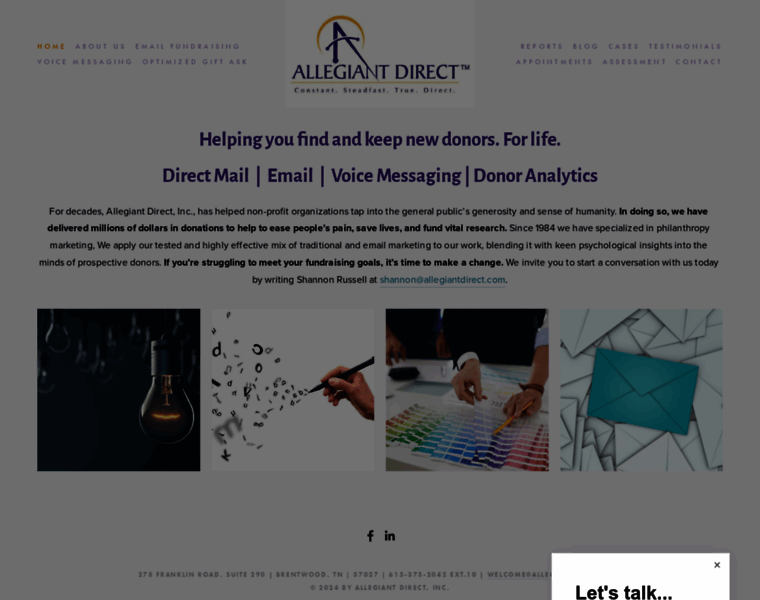 Allegiant Direct is a full-service direct response agency, providing integrated marketing services and specializing in the planning, creation and production of successful direct mail fundraising campaigns and programs for non-profit organizations.