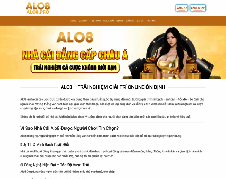 Alo8 là nhà cái cá cược trực tuyến được xây dựng theo tiêu chuẩn quốc tế, mang đến môi trường giải trí minh bạch – an toàn – tốc độ – ổn định cho người chơi.