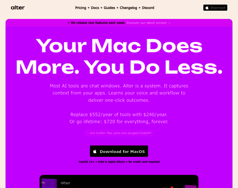 Alter: The seamless AI that supercharges your Mac. Skip the chat, execute instant actions across all apps. 10x your productivity with complete privacy control.
