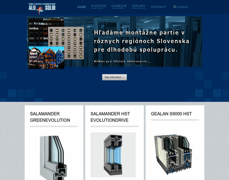 Alusolid, výrobca plastových okien a dverí Salamander Gealan a Spektrum. Výrobca hliníkových okien a dverí Ponzio a Alumil, protipožiarnych dverí Ponzio. Výroba interiérových a exteriérových parapetov, protihmyzových sietí.