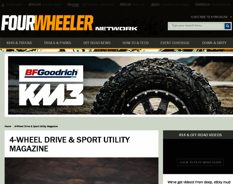 4 Wheel Drive and Sport Utility Magazine is now at Fourwheeler.com. You can find all the latest 4 Wheel Drive Sport Utility Magazine articles, photos, videos, reviews, and everything from 4 Wheel Drive Sport Utility Magazine at Four Wheeler Network.