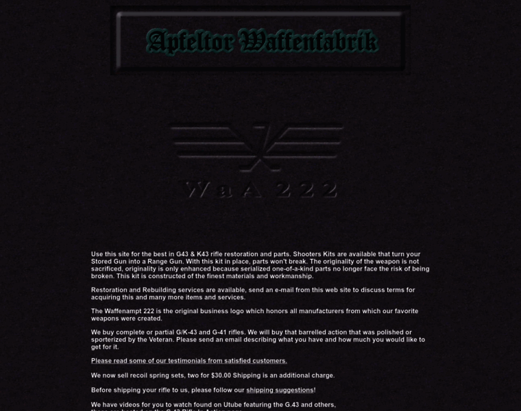 Apfeltor Waffenfabrik - G43 Restoration Services and Shooters Kits G43 K43 G41