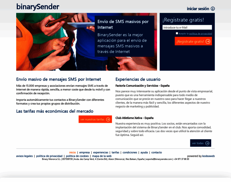 BinarySender | Manda mensajes SMS a través de Internet | Envía mensajes masivos a móviles | Binary Menorca - Alaior (Illes Balears)