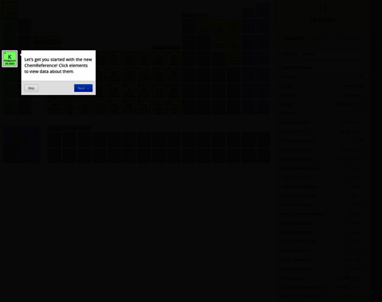 Interactive periodic table and chemistry reference with an incredibly fast work flow. Full featured with data, trends, display modes, and conversions.