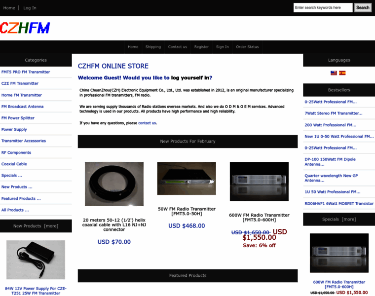 CZHFM ONLINE STORE, FM broadcast transmitter sales