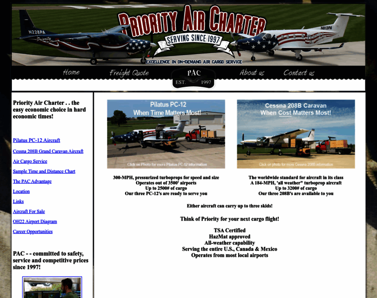 Priority Air Charter is an independent private passenger flight and freight hauling company. Anything from a letter pack to palletized freight we can take care of it. With 24 hour dispatch you can talk to a real person when you call. Compare us to private jet charters and you might be surprised at the savings and speed we offer on our private passenger charters.