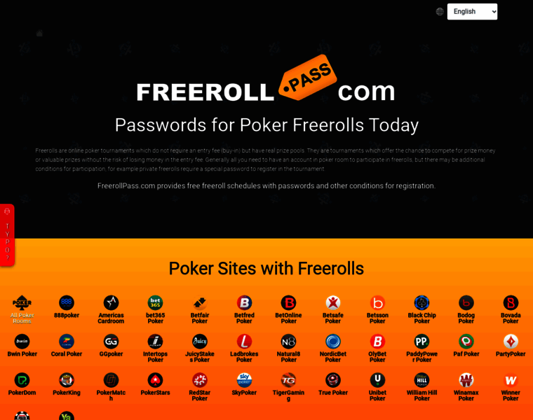 All poker freeroll passwords and daily freeroll schedule are available to you absolutely free and without registration.
