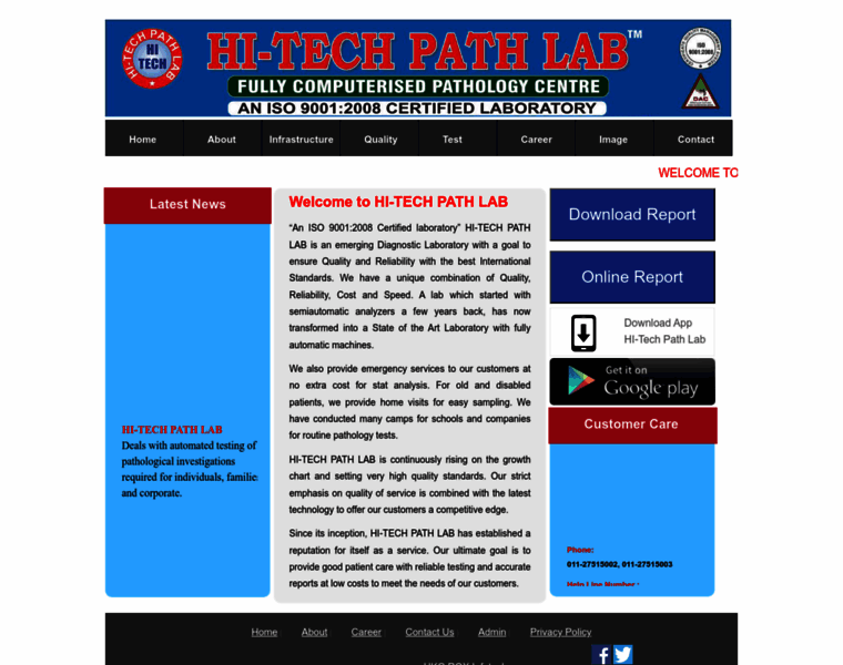 An ISO 9001:2008 Certified laboratory” HI-TECH PATH LAB is an emerging Diagnostic Laboratory with a goal to ensure Quality and Reliability with the best International Standards. We have a unique combination of Quality, Reliability, Cost and Speed. A lab which started with semiautomatic analyzers a few years back, has now transformed into a State of the Art Laboratory with fully automatic machines