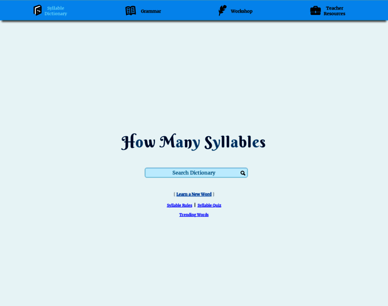 Syllable Dictionary; a reference guide for how to count & find syllables, learning how to pronounce words, and finding synonyms & rhymes.