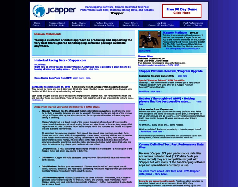 Handicapping Software, Comma Delimited Text Past Performance Data Files, Historical Racing Data, and Rebates - JCapper