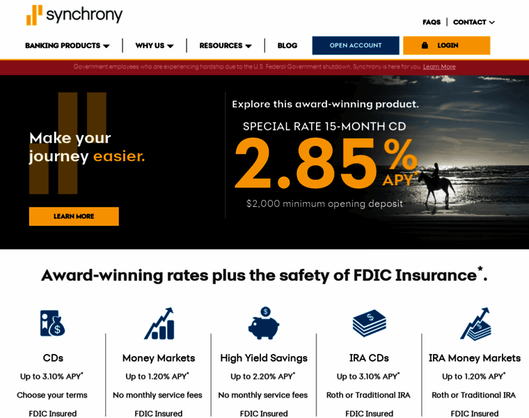 Put your money to work with Synchrony Bank’s award-winning CDs and High Yield Savings accounts. FDIC-insured online banking with competitive rates and no fees.