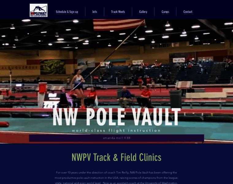 Learn to fly with the best pole vault instruction based in the NW. Coach Tim Reilly's NWVP Track & Field Clinics trains beginner to elite vaulters at the University of Washington's legendary Dempsey Indoor Center. All season pole vault training sessions and camps are available.