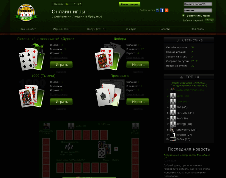 Онлайн игры в браузере с реальными людьми. Играть в Дурак онлайн. Играть в карты в Тысяча (1000) онлайн, деберц, дурак, преферанс, козел, клабор.