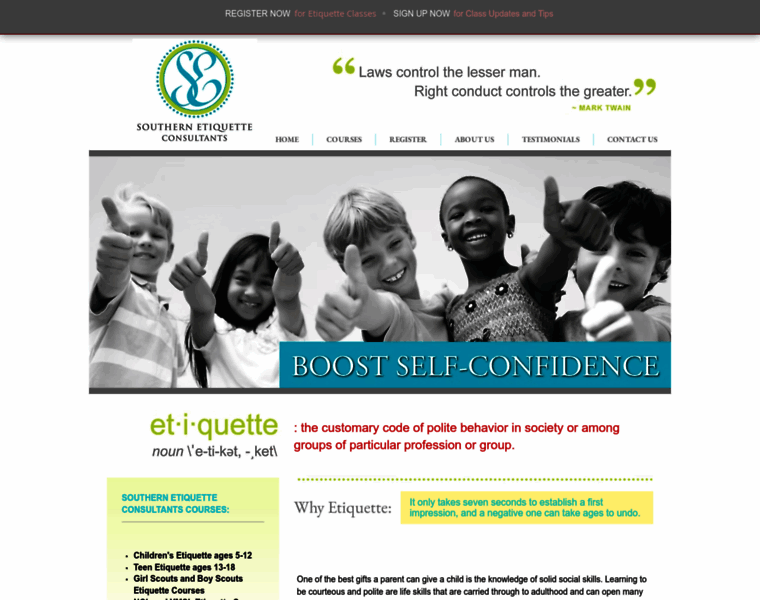 Etiquette classes for children and young adults. Our etiquette lessons teach proper dining skills, social skills and self care. K through High School students.